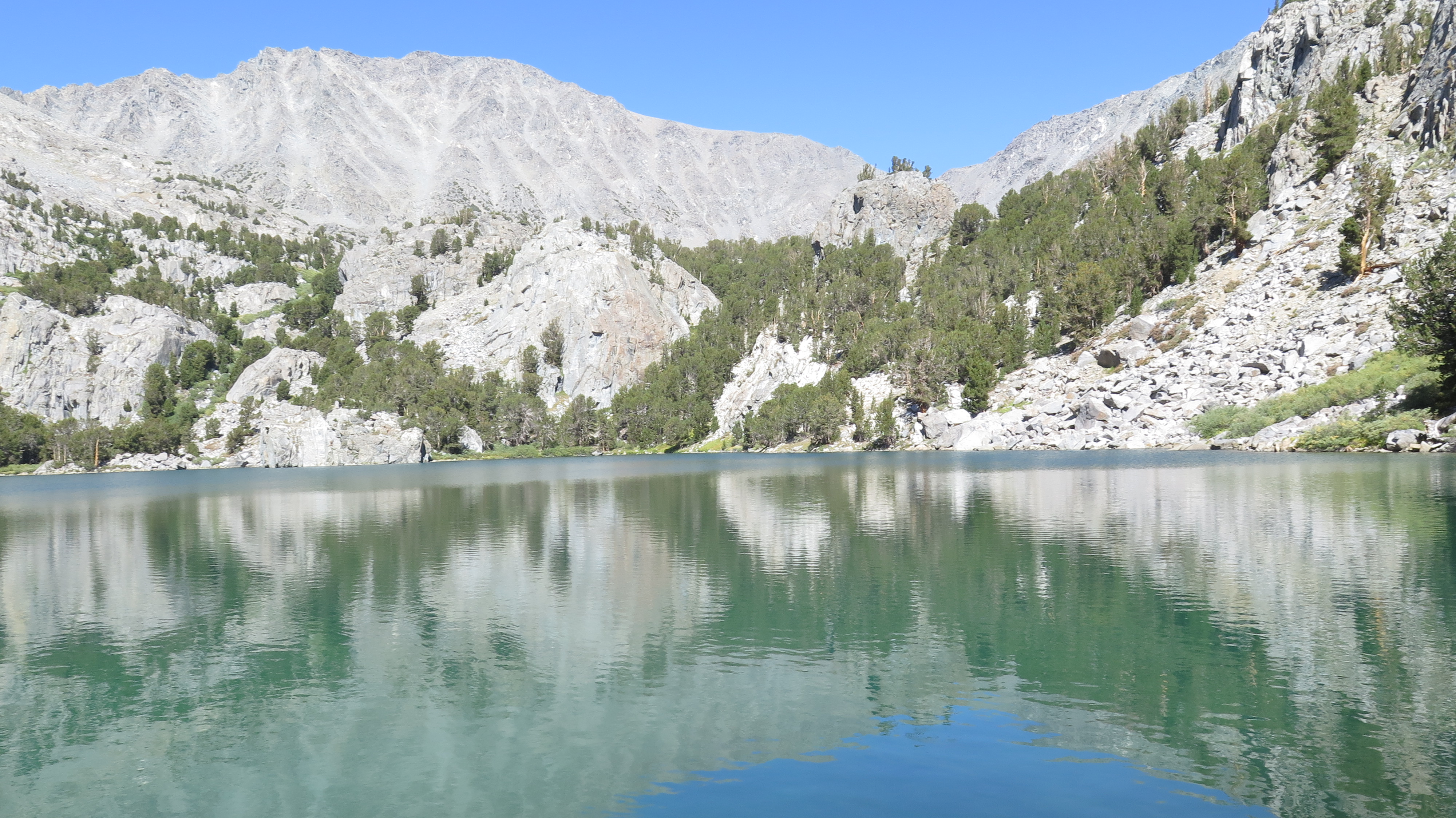 Initially I had planned to hike Mount Dana, the 2nd highest peak in Yosemite, but looking at it and how barren it is I changed my mind. One reason we go up there to the Sierra is to get some green and water. Instead of that hike we headed back towards Bishop to see if we could get some permits for Bishop pass. We arrived at the ranger station just after 10am and were able to get a permit for the same day. So we headed straight out to South Lake, found a spot in the hiker's parking lot and packed our backpacks. Around 1:30pm we started hiking towards Bishop pass. As we were entering the wilderness a couple came out after a 25 day / 180 mile adventure starting from Bridgeport in the north.
