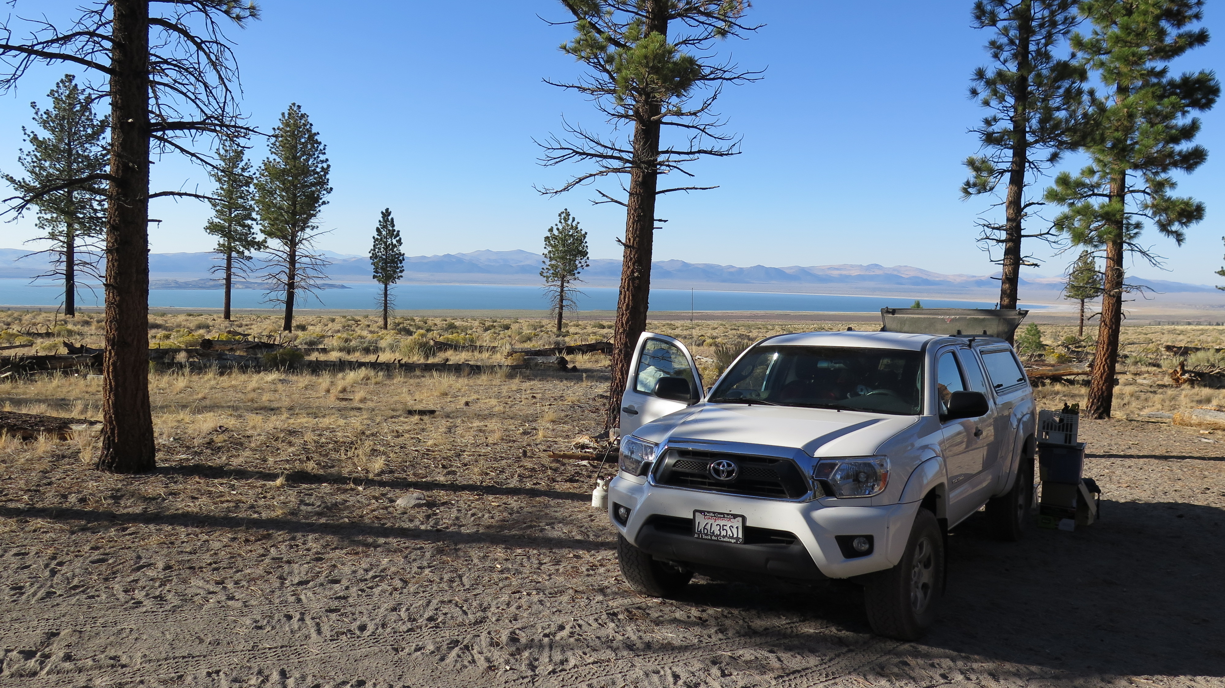 We drove up to Bishop where we arrived at the White Mountain Information center around 1:30pm. We checked with the ranger on the permit situation for walk-in permits since we did not have any reservations. The ranger thought we should not have any problems getting permits for a given day once the Labor Day rush was over. That worked for us since we wanted to do some day hiking to acclimatize first anyway. So we continued on to Lee Vining at Mono Lake and checked with the rangers there at the Mono Lake/Yosemite visitor about the camping situation in Yosemite. We had to ask even though we didn't expect much on one of the busiest weekends of the year. The ranger confirmed that there were no camping spots available in or around Yosemite. So we asked him about some suitable dispersed camping spots on the BLM land east of Hwy 395 and south of Mono Lake. He suggested a forested area with nice views of the lake. We quickly found a good spot, prepared some dinner and crawled into our sleeping bags shortly after sunset.