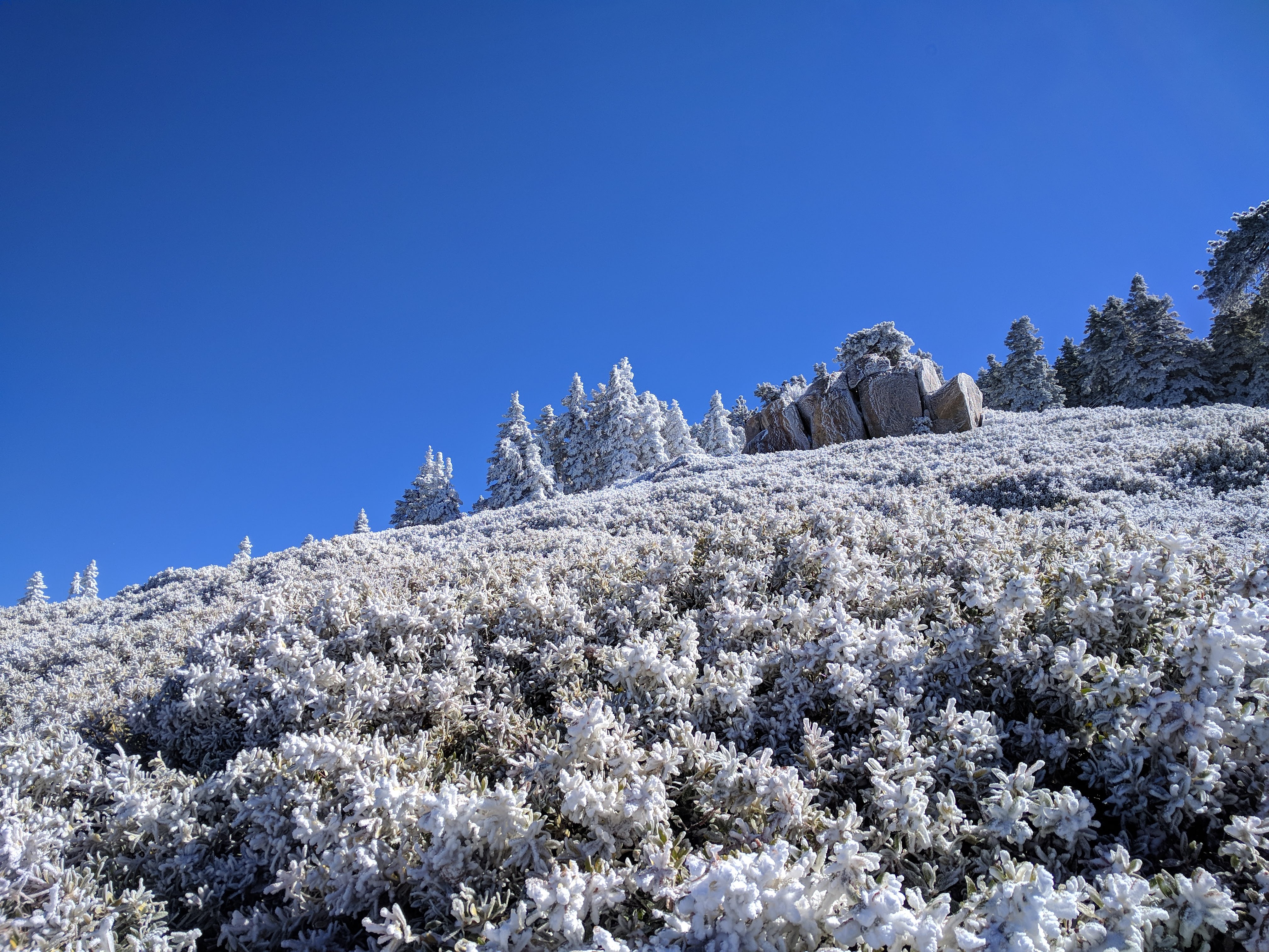 Icy brush and rock