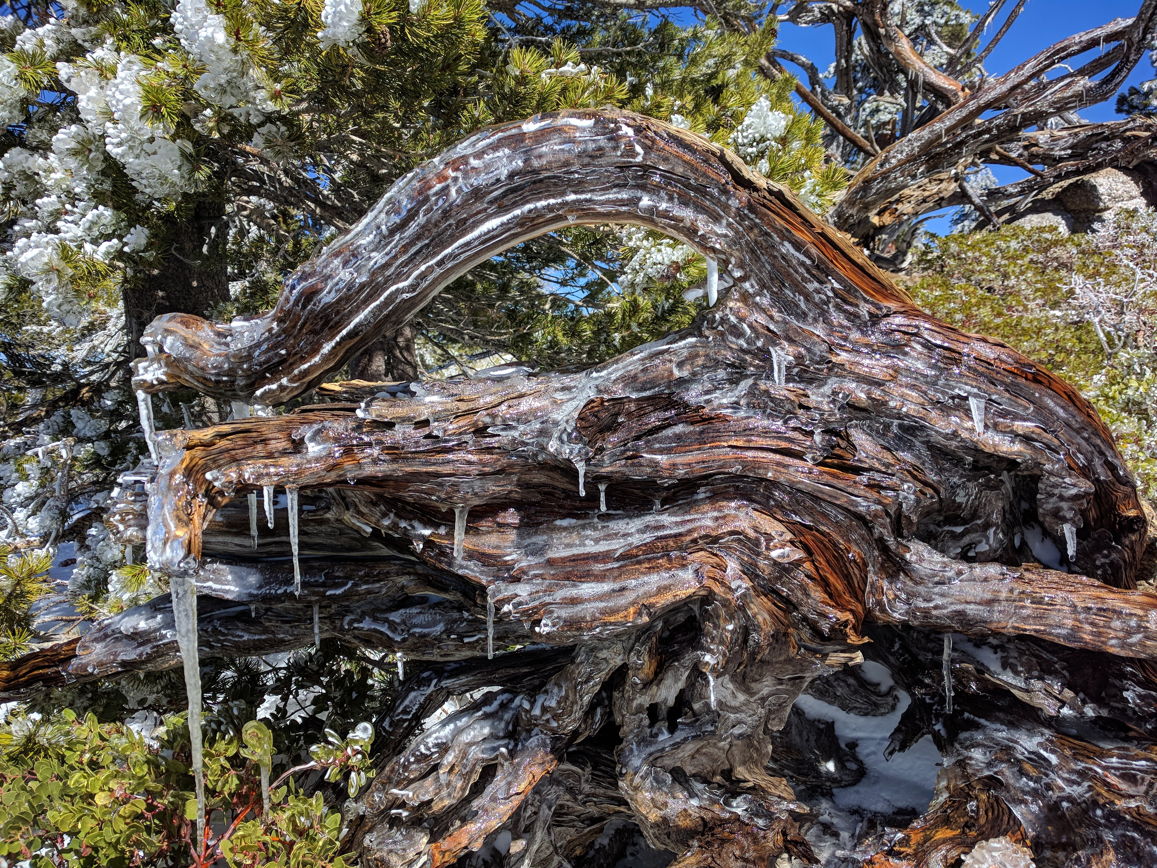 Clear ice covering root.