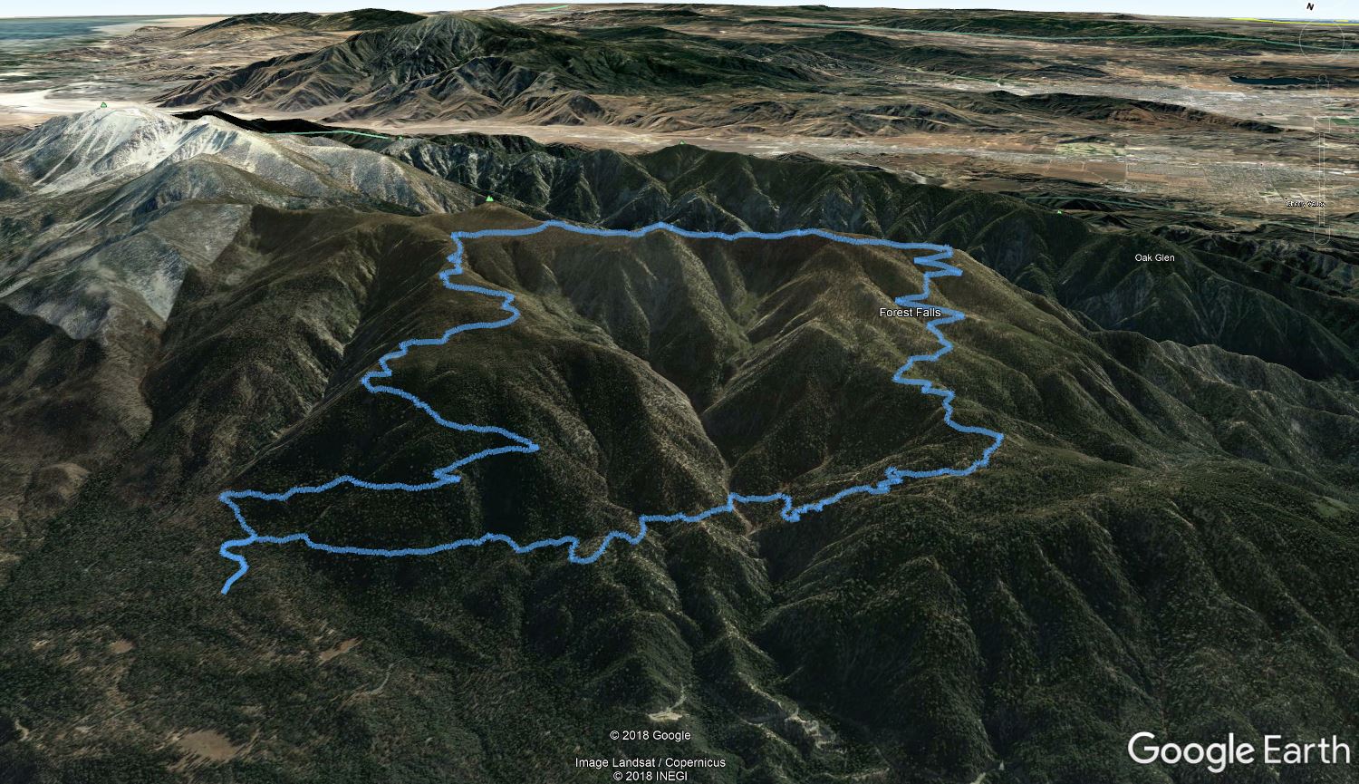 Google Earth 3D view of hike