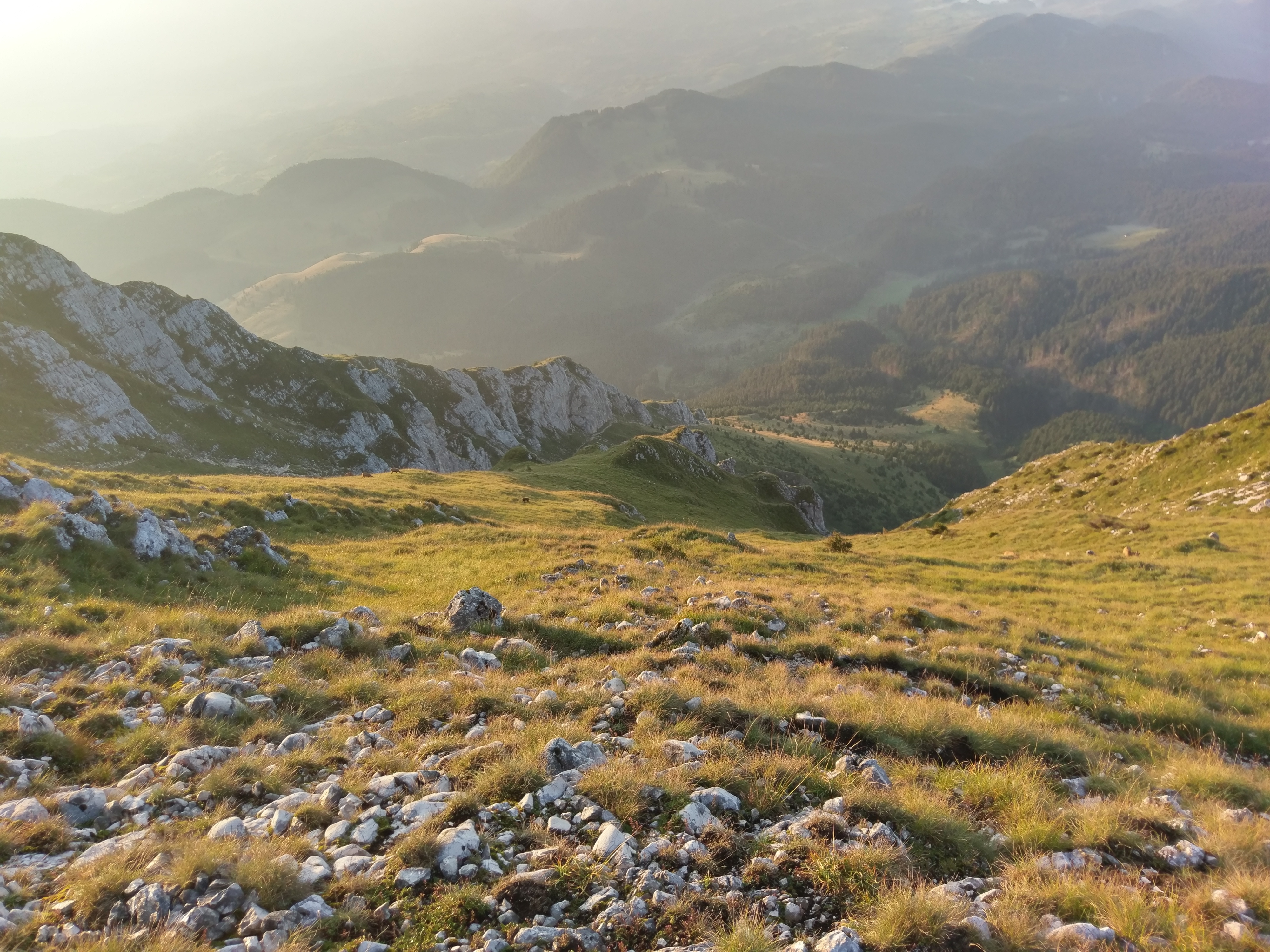 Morning light hitting the grassy slopes