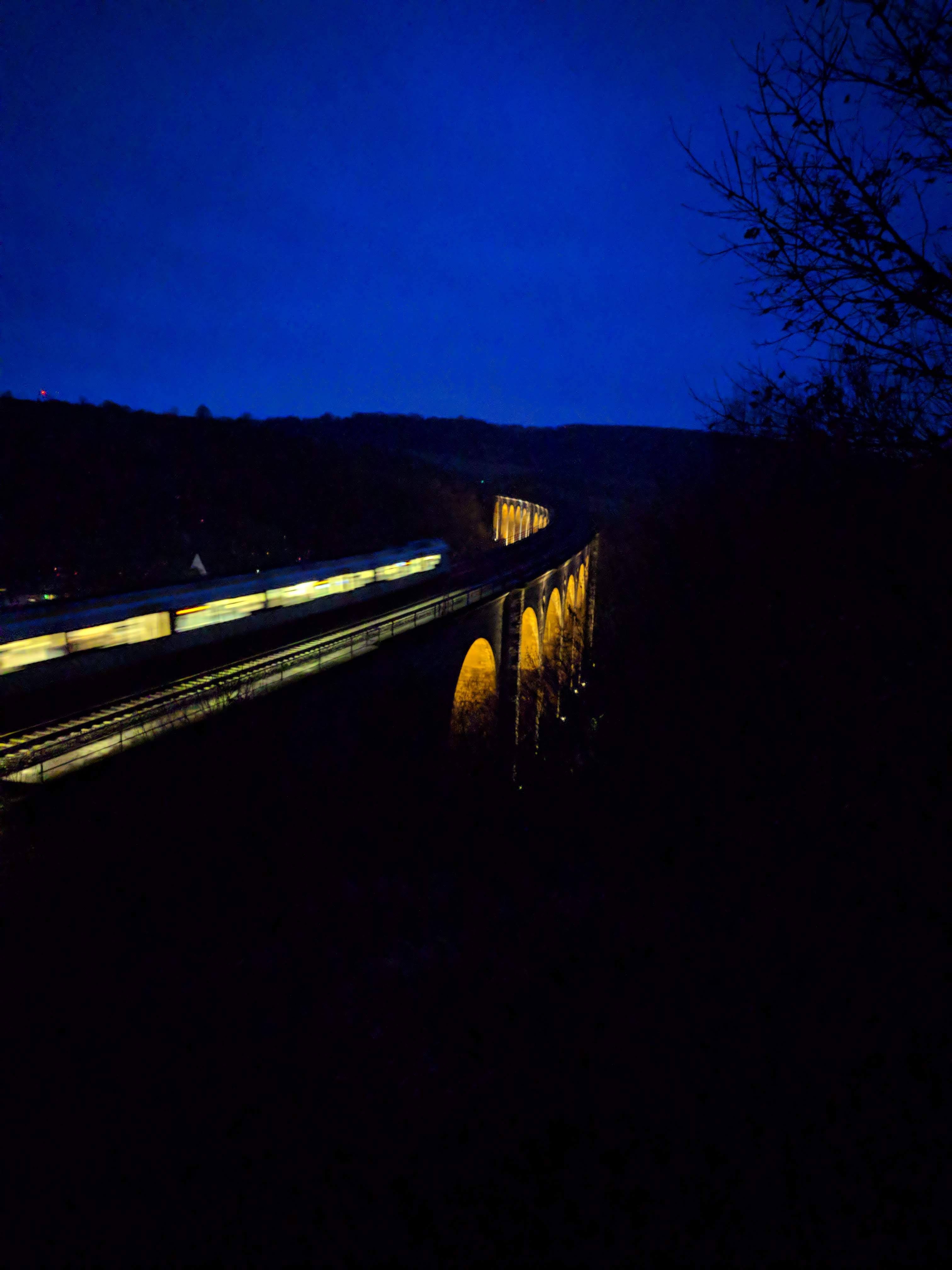 Night trail on the bridge