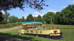 Besides the hiking below Mont Blanc the barge trip on the Canal de Bourgogne (Burgundy) was our main purpose for this vacation trip. Our friends have a friend who is part owner of the barge Derrineel and we joined them for a week on the canal.When we first talked about this trip I thought a week on a barge going 6.5 km/h (4mph) would be boring, but I had not checked the part of the canal we would travel and how many locks there were. On a small barge like this everyone on board has to help, particularly during the time in the locks one person is needed to assist the driver (“captain”). By the time we were done we had gone through over 100 locks!