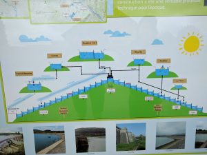 We started our barge trip in Venarey-les-Laumes and ended it in Dijon. The Canal de Bourgogne winds it way through very rural land here in central France. For most of the way it’s lined by tall trees on both sides. The portion that we traveled climbed from about 240 m (787 ft) over 27 km (17 miles) to 378 m (1240 ft), then we went down over about 48 km (30 miles) to around 240 m (787 ft) again. On the way up we passed through 55 locks with each lock giving 2.5 – 3m in elevation gain. On the downhill side we passed 54 locks with similar elevation changes. Locks are as close as 200 m (650 ft) with the longest distance between locks at the peak (including the 3.33km tunnel) around 5km (3.1 miles).